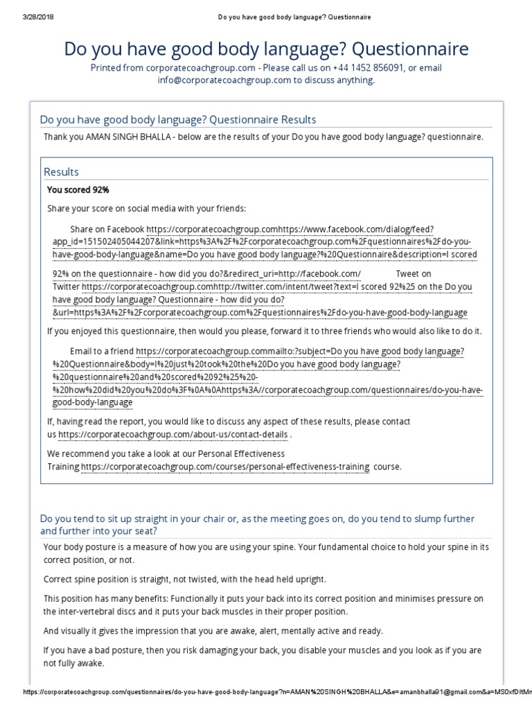 Do You Have Good Body Language_ Questionnaire | Body Language | Odor