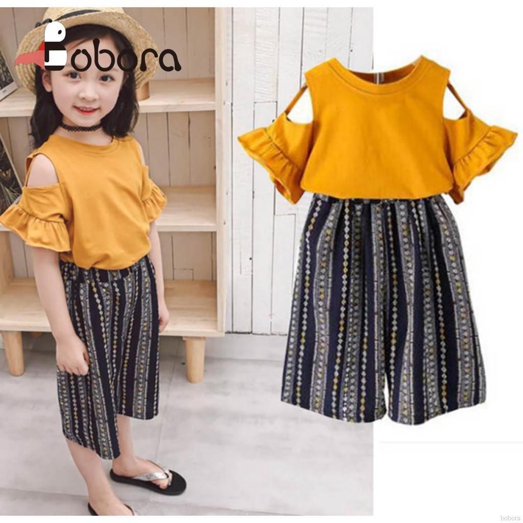 Bobora Summer Baby Girls Off Shoulder Design T Shirt Tops Striped Short Pants Suits Shopee Malaysia