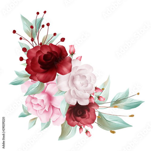 Floral Decoration For Wedding Invitation Card Border Watercolor Flowers Illustration Of Red Roses And Peonies Element Buy This Stock Illustration And Explore Similar Illustrations At Adobe Stock Adobe Stock